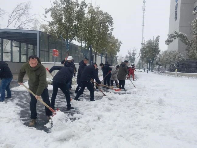 2月4日,武漢市迎來(lái)今冬最強(qiáng)寒潮,市區(qū)道路大面積積雪結(jié)冰,道路交通存在嚴(yán)重安全隱患。為確保道路交通和市民出行安全,防范大雪帶來(lái)的安全隱患,航發(fā)集團(tuán)緊急啟動(dòng)極端惡劣天氣應(yīng)急響應(yīng)機(jī)制,迅速安排部署相關(guān)工作,上下齊動(dòng),備足融雪劑、鐵鍬、雨衣、手套等除雪裝備,備齊車輛、人員,確保隨時(shí)可以上路除雪。集團(tuán)所屬各單位組織黨員職工、項(xiàng)目參建單位全員出動(dòng),與時(shí)間賽跑,力爭(zhēng)用最短的時(shí)間保障轄區(qū)道路通行正常。